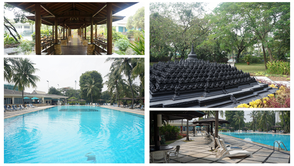 第二天我们开始了此次旅程最重要的行程—参展。大家洋溢着笑脸迎接来自世界各地的客户,我们细致周到的行程安排和无微不至的接待工作,得到了参展企业的一致认可和好评。  我们下榻的宾馆是雅加达BOROBUDUI HOTEL,五星级酒店的豪华泳池让大家因为旅途奔波而略显劳顿的身体在参展期间也得到了彻底的放松。每天晚上回到酒店休息片刻,大家便不约而同的聚集到泳池旁,奥林匹克标准规格的超大用泳池,真的是可以“畅游”。