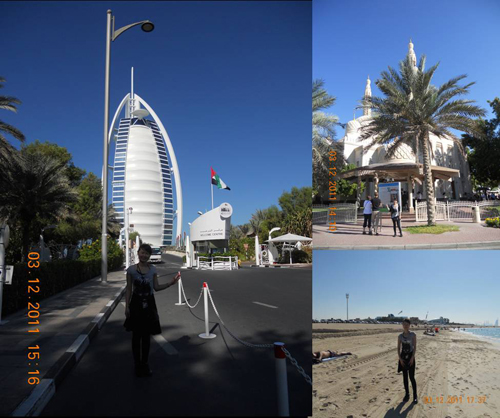 终于见到了传说中用24吨黄金装饰的海上阿拉伯神殿-七星级阿拉伯塔酒店~ 虽已年末,但迪拜依然30多度的高温,从冬季来到了夏季,我们更加兴奋,在海滨浴场,当地人正享受着宁静的日光浴,而我们在海边奔跑着、雀跃欢呼着,像回到童年一样,享受着细腻的沙滩,寻找可爱有趣的贝壳... 而后参观了茱美拉清真寺,伊斯兰艺术中心(又称伊斯兰古董世界),伊斯兰精品商城,茱美拉广场-阿拉伯传统建筑群与现代人工奇迹相互呼应,美不胜收。 还有马蒂娜商城,具有阿拉伯神秘幽幻的建筑特色,在这里,你可以体验阿拉伯式的购物环境。不过,俺只买了一个小小的冰箱贴以作留念~