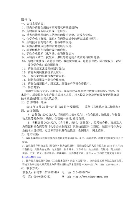 全国药物合成新技术、新工艺、新设备高级研讨会
