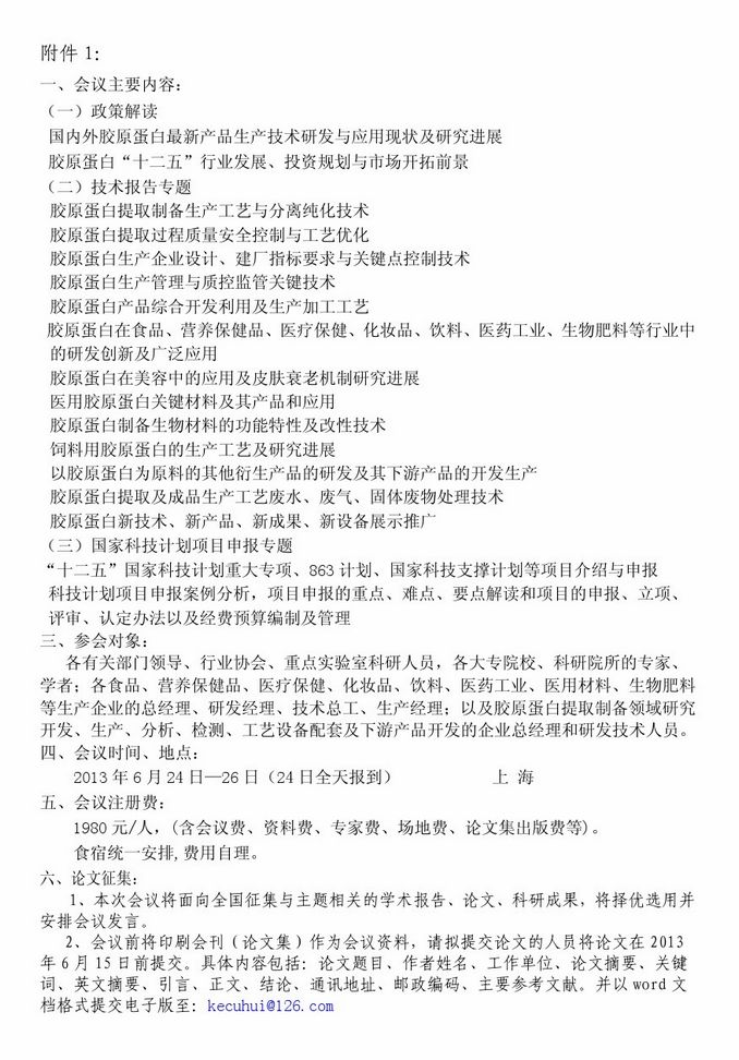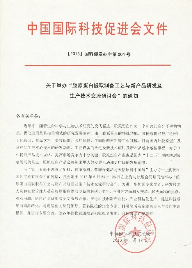 胶原蛋白提取制备工艺与新产品研发及生产技术交流研讨会