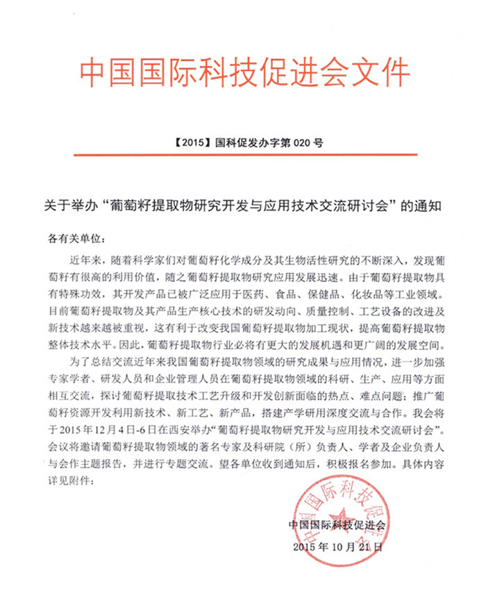 葡萄籽提取物研究开发与应用技术交流研讨会